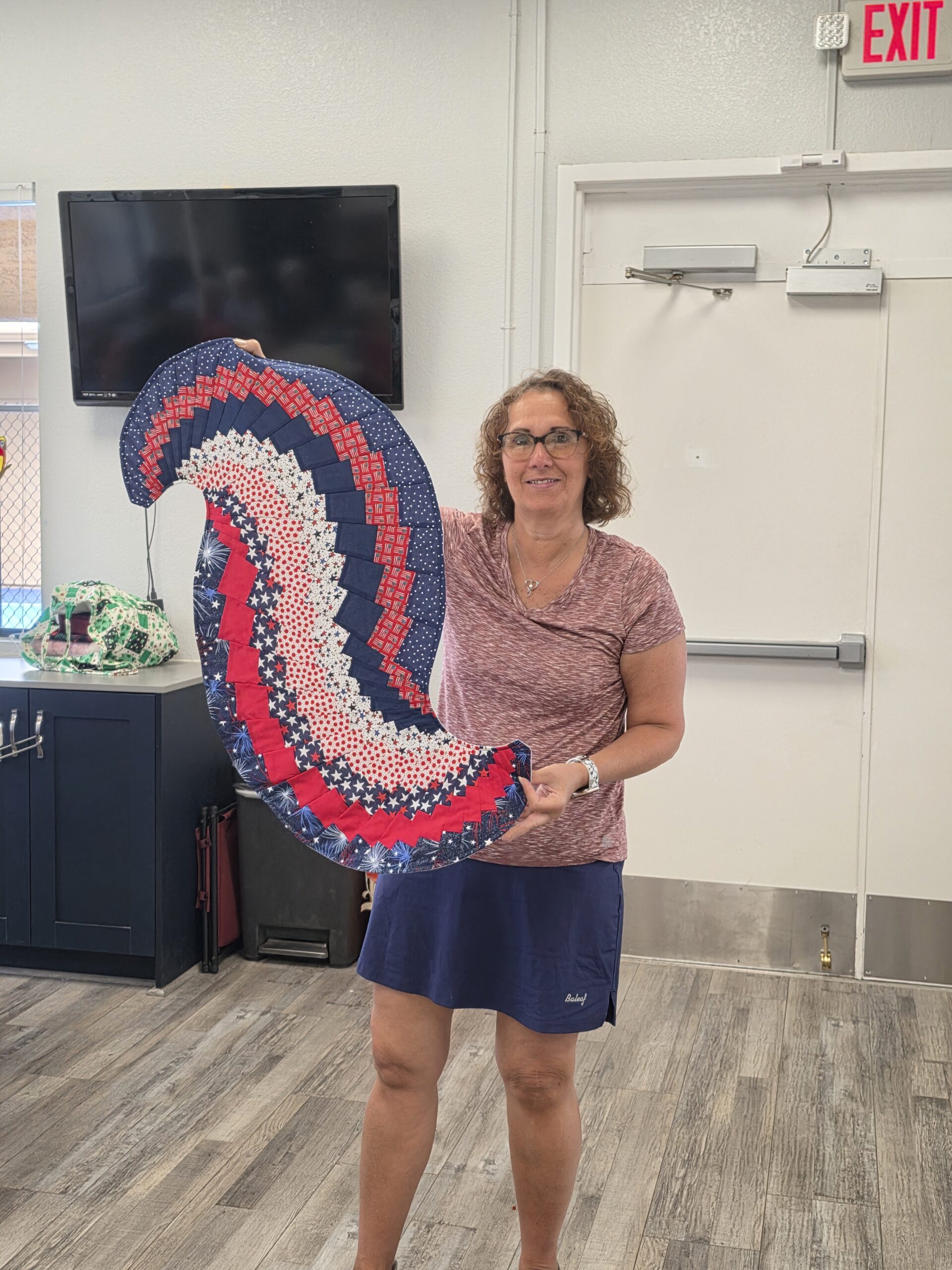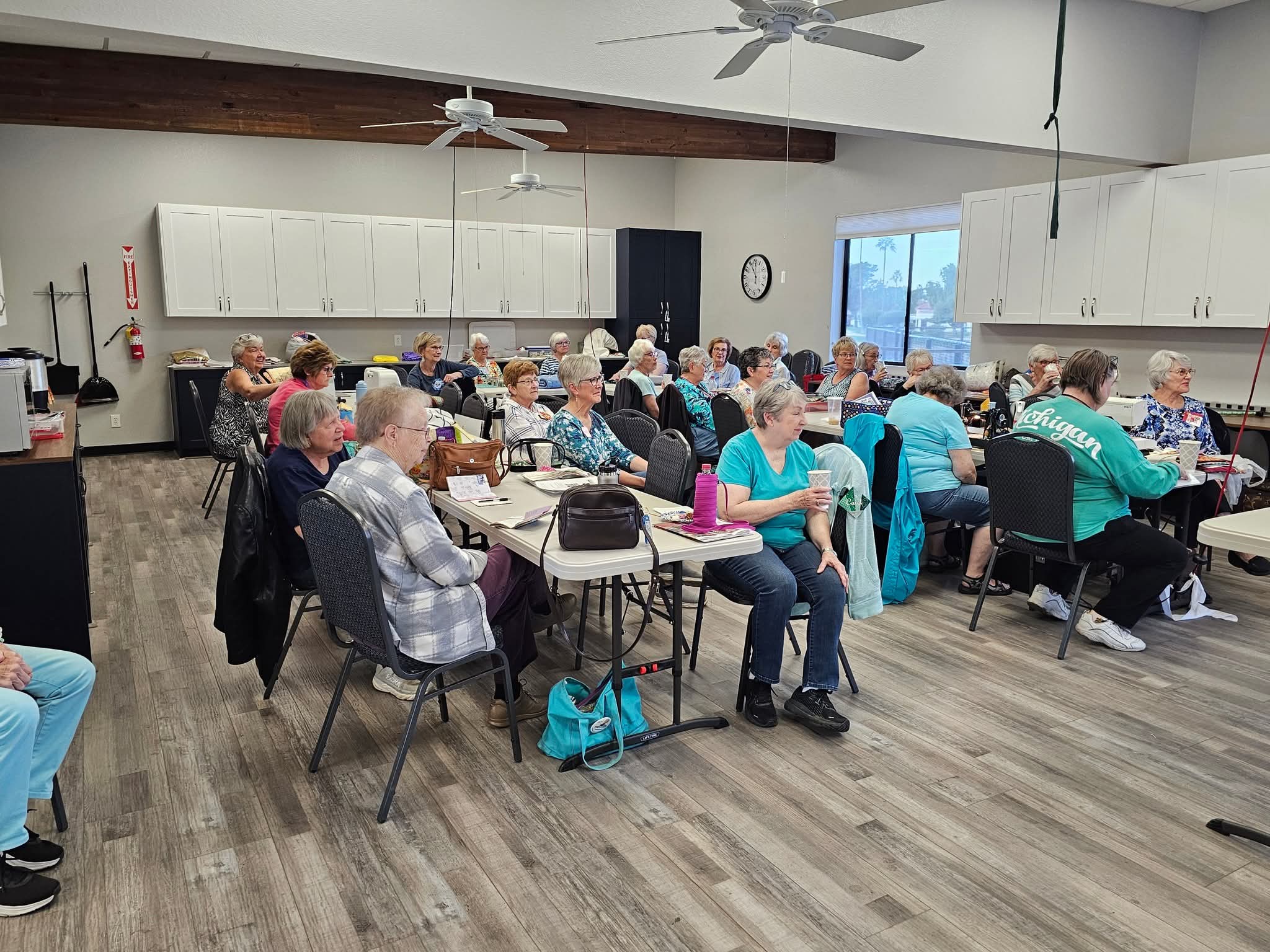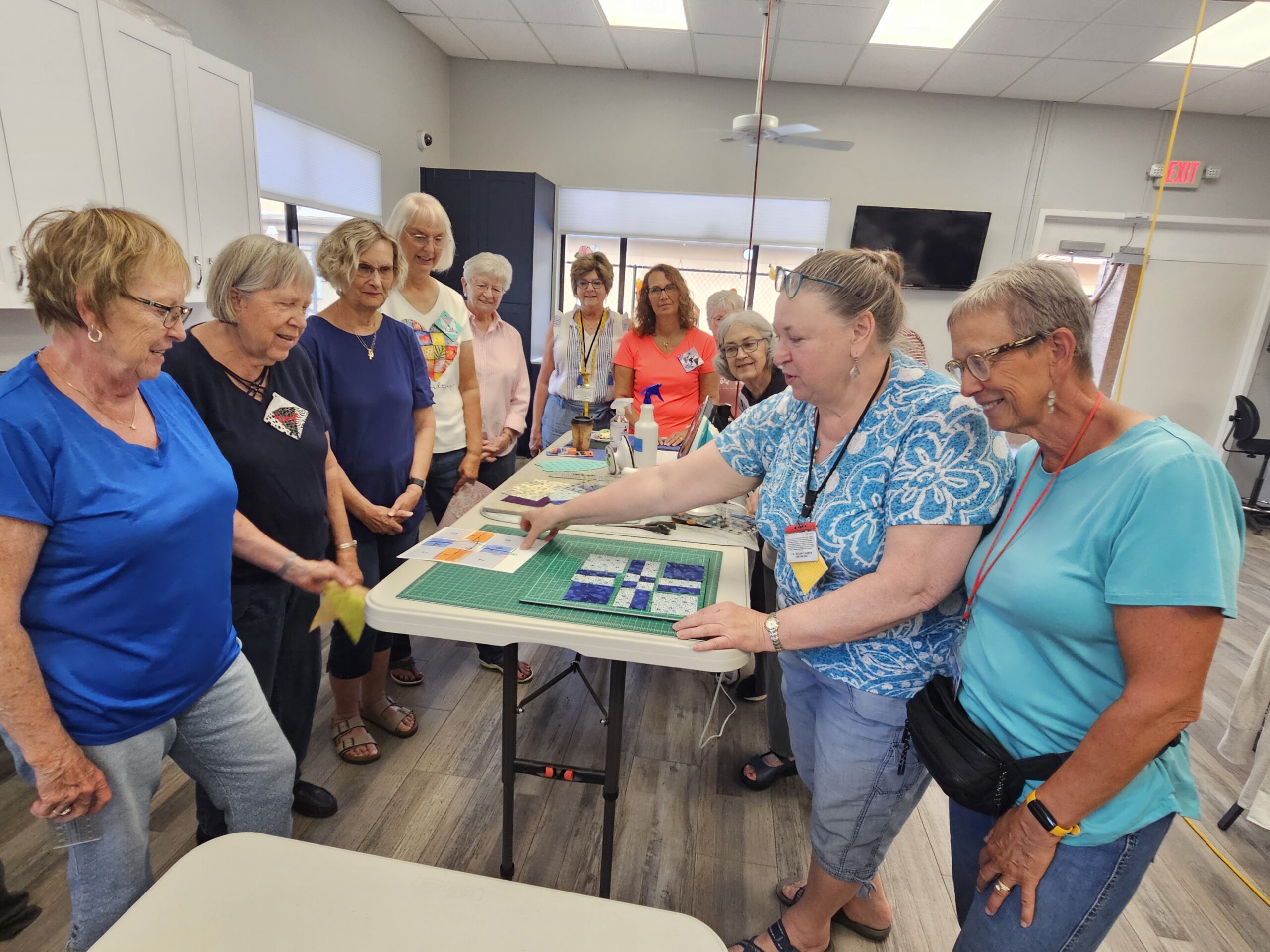 Each year we hold a retreat in the activity center where we can spread out and have a full fun day of sewing and quilting camaraderie.