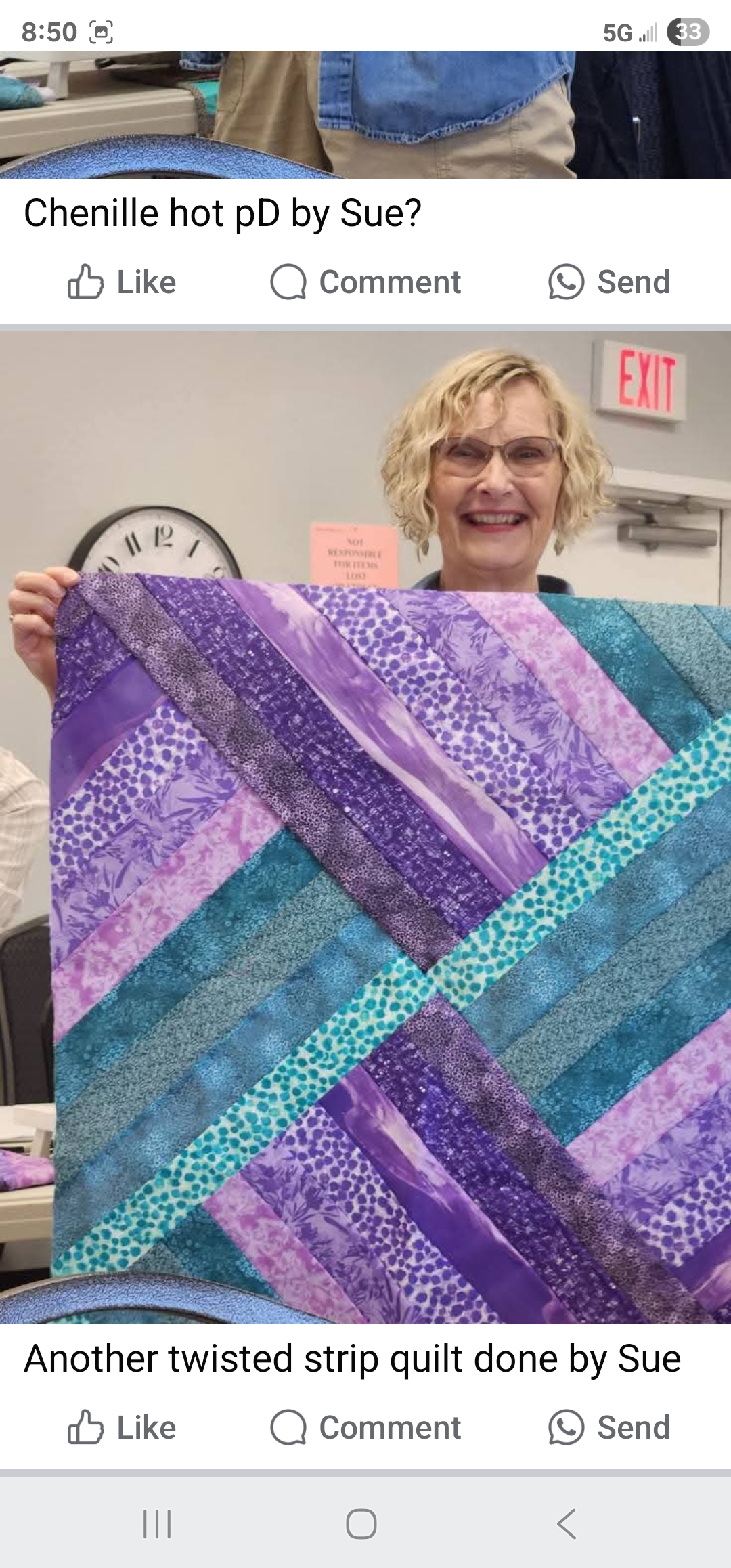 Throughout the year we have instructors offer classes on various projects. We take field trips, of course you can’t go to enough quilt shops. Someone signs up for weekly treats. We show and share our finished creations and any input someone is excited to share.
